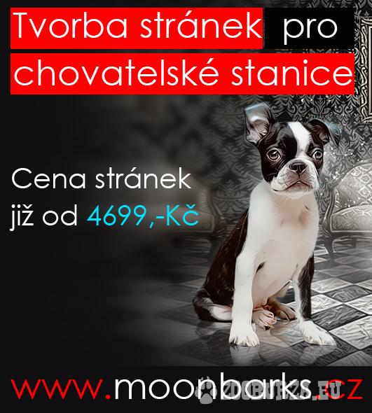 Popis: Představujeme webdesignové studio specilizované na tvorbu stránek a grafické služby pro chovatele psů - studio Moonbarks. 6-ti letá praxí v oboru dogdesignu, více než 100 referencí přímo od zákazníků je zárukou kvalitního a nejlepšího řešení pro každého chovatele. Nově nabízíme i luxusní webové stránky. Cena stránek již od 4699,-. Rozsáhlé portfolio najdete na našich stránkách - www.moonbarks.cz